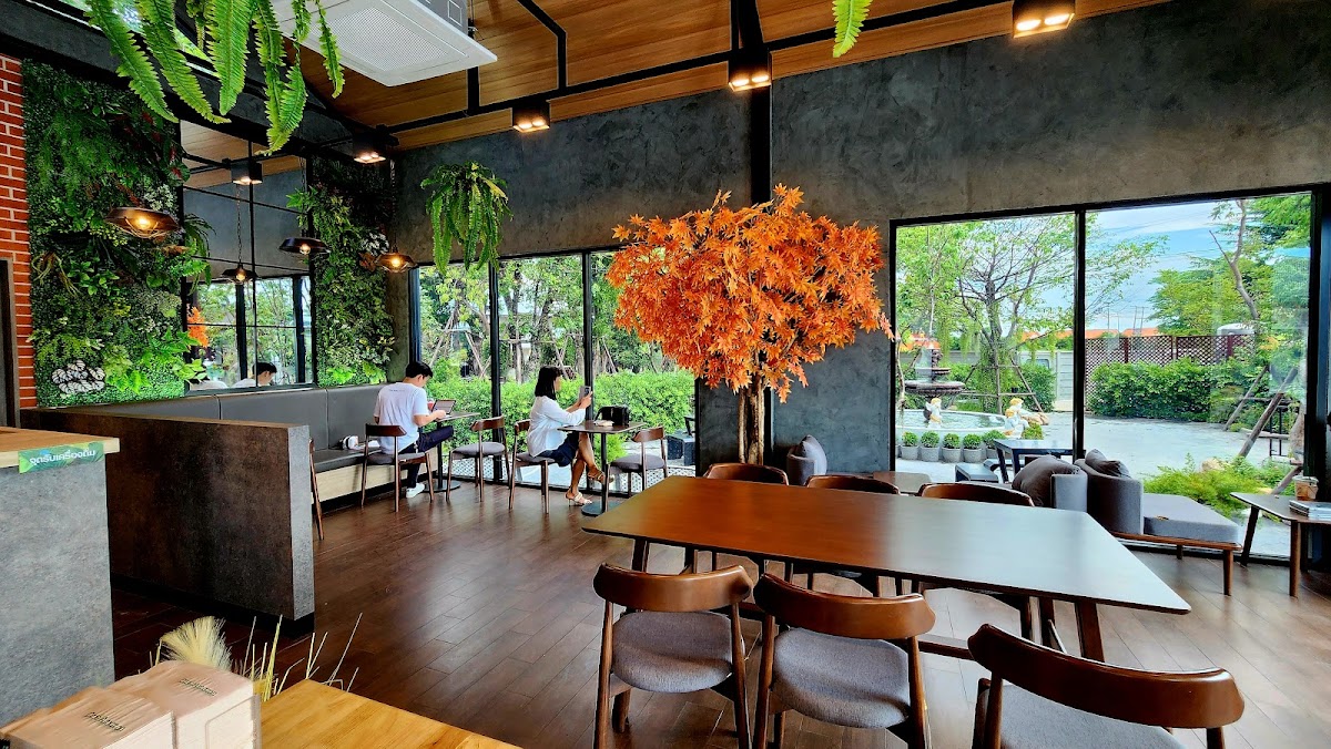 The ambiance is inviting and modern, featuring spacious seating with an airy and bright layout. As you step inside, you’ll be greeted by the refreshing chill of air conditioning, perfect for that tropical heat. The café is adorned with tasteful decor, including beautiful gardens and a calming water feature that adds to the serene environment. Customers such as REDANT singburi have praised the lovely greenery and the striking large trees that enhance the overall beauty of the spot. It's the perfect place to unwind or have a lively conversation with friends, as noted by ชาลี, who appreciated the spacious seating accommodating groups of all sizes.